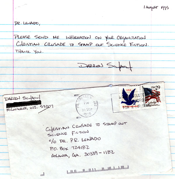This last, rather perfunctory request for info is notable as it is postmarked September 1995 – more than five years after the first Christian Crusade flyer appeared. Note the Milwaukee address; we received an interesting percentage of mail from the Midwest. Perhaps an anonymous fellow prankster started his own crusade up that way.