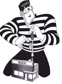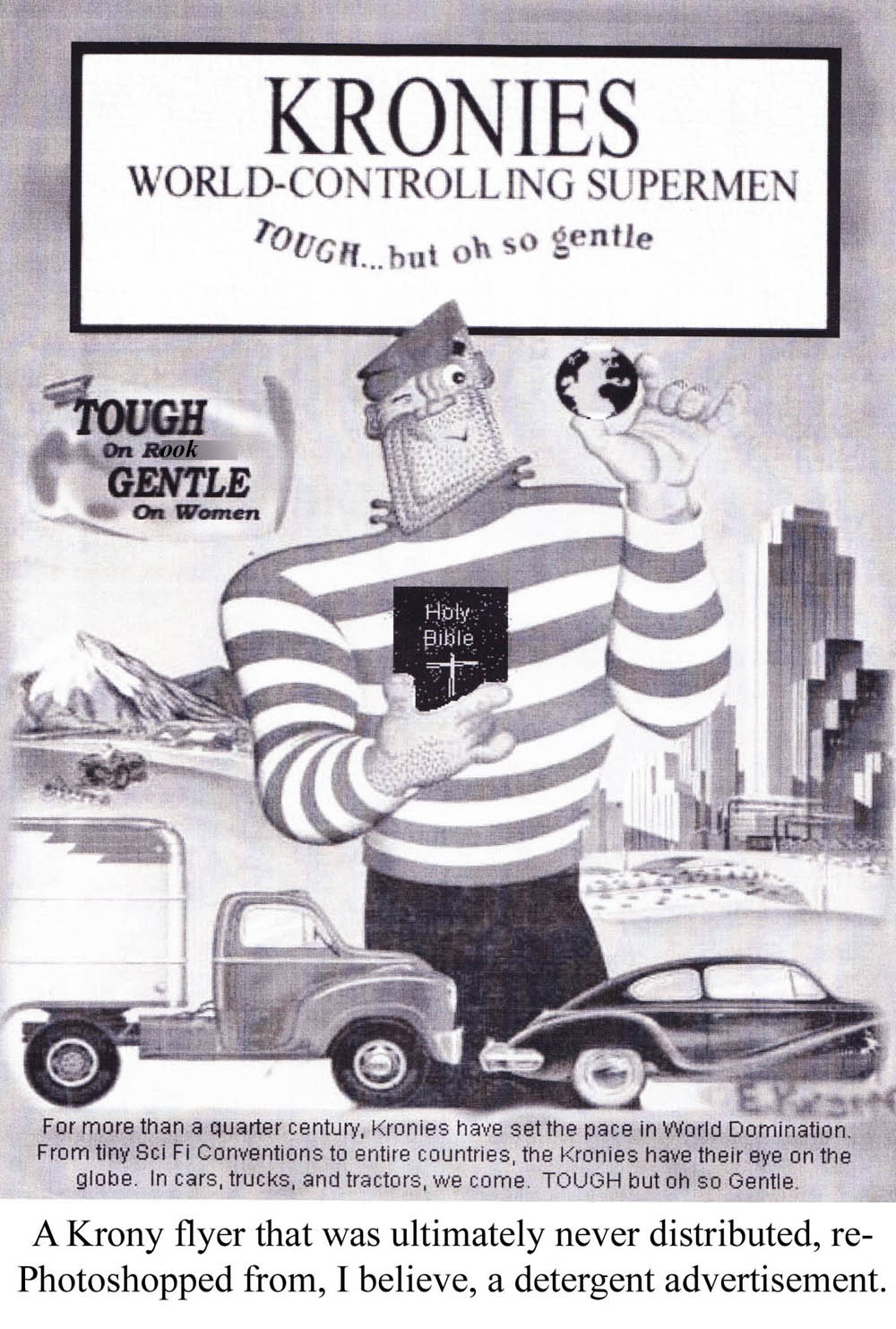 Having failed thus far to mention anything that even sounded like a crime, Mr. Rook brought up the issue of the Krony flyers, and passed copies to the judge, who visibly attempted to suppress a grin upon reading them. "So this matter is over the fact that they brought these flyers into your convention?" the judge asked with a tone which made it clear that the exercise of freedom of the press didn't constitute a good reason to take someone to court. "Yes Ma'am! Anyone bringing those flyers into my convention would be in a lot of trouble!" Rook replied, plainly not catching the inference at all. The judge went on to ask if we had been indoors or outdoors when we had been accosted by security, a toddler-level question which Rook then attempted to answer for about five minutes by dickering over what constituted "indoors" repeatedly and even attempting to draw a diagram of the premises before the increasingly irate judge finally managed to dumb down the question enough for Rook to answer "Outdoors." Myself and K1 sat in stupefied disbelief that the matter of the fake badge, the only actually illegal part of the whole affair, had not been mentioned at all. Finally, Rook indicated that we'd recorded ourselves at the con, and did the court have a VCR for him to use? The answer was no; only the superior court had one, and a murder trial was happening there at present, which we weren't going to be disturbing. At this juncture, Agent K1 offered a suggestion which can only be termed brilliant: he offered to play the judge the master copy of said tape on our camera, which we'd brought along in case we'd been allowed to tape the hearing (we weren't).